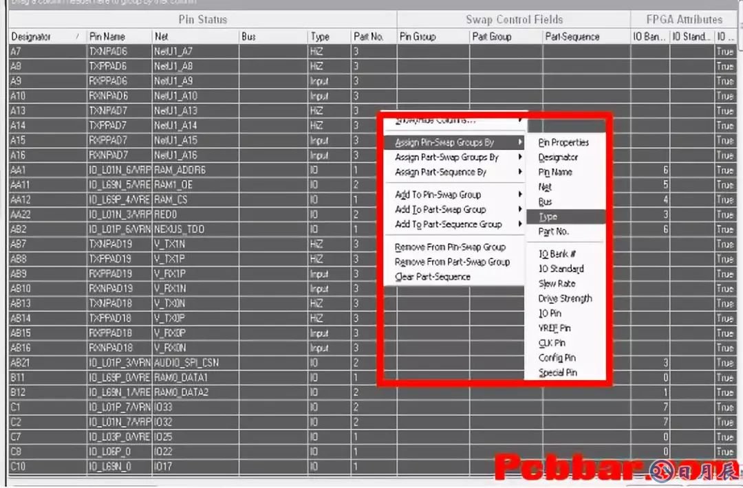 然后在菜單“Tools”選“Pin/Part Swaping”下的 Configure 配置如圖(三)