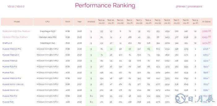 在現(xiàn)有商用設(shè)備中華為麒麟970/980系列芯片機型已經(jīng)完全壟斷了AI Benchmark,多款設(shè)備霸占前11名,得分最高的是搭載Mate 20 Pro 12026分,而驍龍8150 AI跑分成績要比麒麟980高出足足84%!