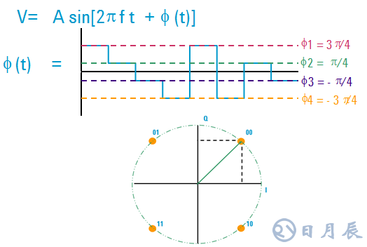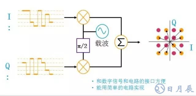 矢量的相位直接測(cè)量比較困難。實(shí)際的接收機(jī)和測(cè)量系統(tǒng)使用I/Q解調(diào)方式。它把信號(hào)相位的控制問題轉(zhuǎn)換成2路正交分量電壓的控制問題。