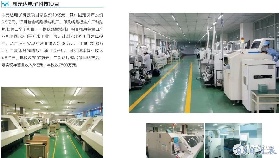 鼎元達(dá)電子科技項(xiàng)目總投資10億元,其中固定資產(chǎn)投資5.5億元。項(xiàng)目包含線路板鉆孔廠、印制線路板生產(chǎn)廠和貼片/插片三個(gè)子項(xiàng)目。
