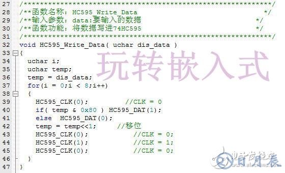 知道了以上4點就可以寫程序了。其中3、4條是硬件連接上的事情(也可以用單片機的IO口來連接,這樣的話可以隨時控制74HC595的工作與否情況)。寫程序主要靠1、2條。下面具體操作。